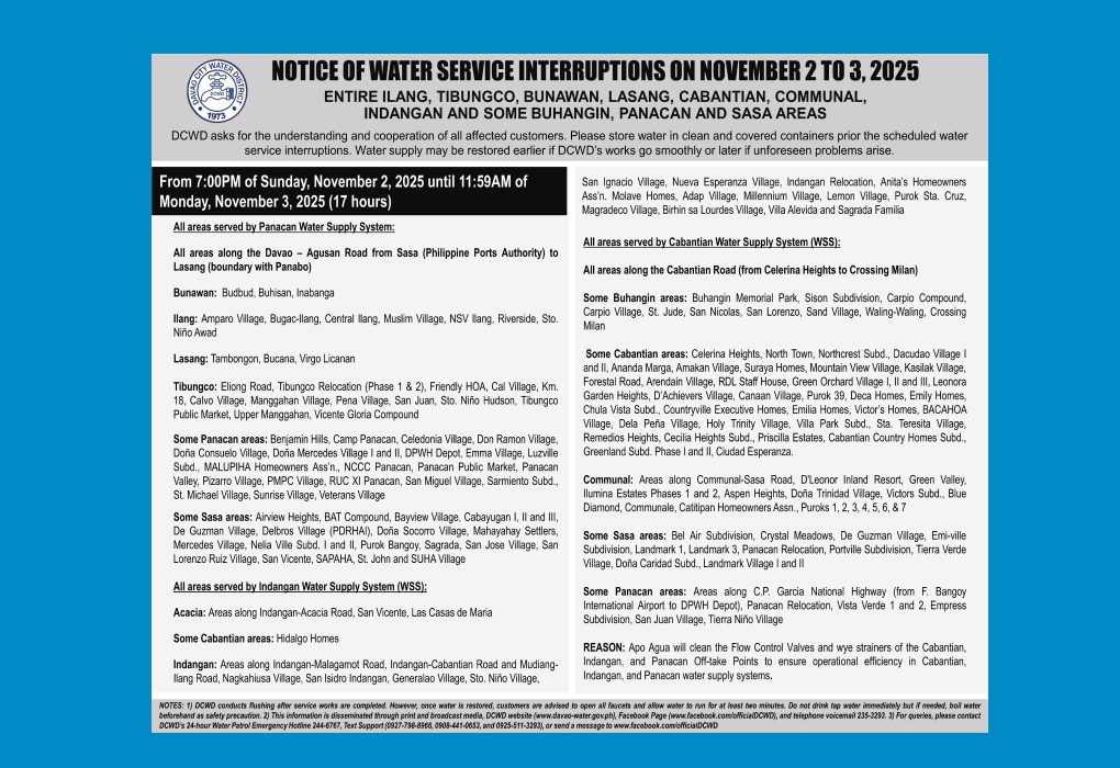 Switching power interruptions on November 7 and 8 in Downtown Davao City