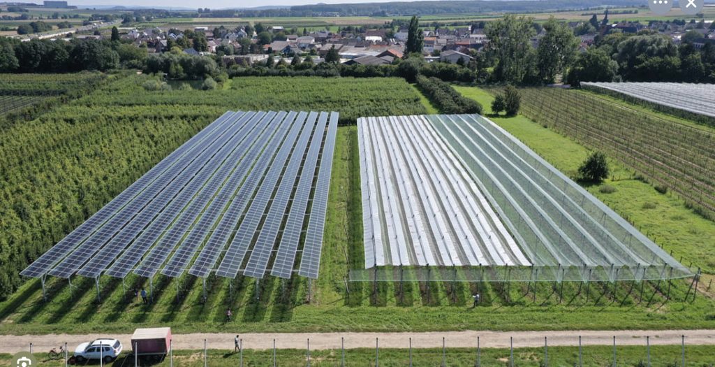 I saw a photo taken in Kosovo which showed sheep grazing under the Solar Panels thus producing livestock in the vast fields used for Solar Energy Production.