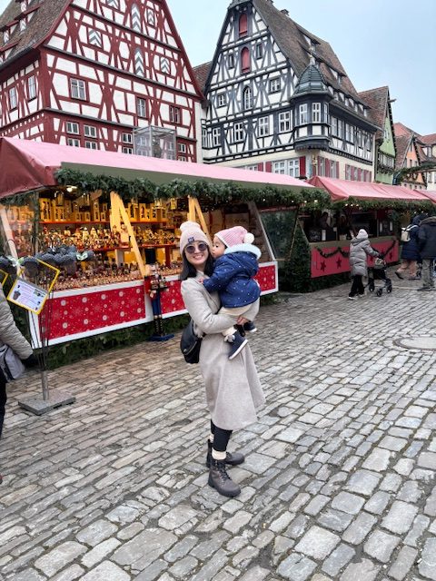 After about a 3-hour drive from Ramstein, we reached the medieval town of Rothenburg ob der Tauber, which means “red fortress above the Tauber (river). We literally have to pass through a fortress to get into this well-preserved walled town in Germany. The town walls include gate houses and towers. The half-timbered houses and other building structures that line the cobblestone lanes of its old town will make you feel that you’re stepping into a real-life storybook or movie.